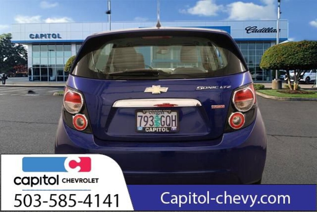 We Buy cars- Fast, Fair and Easy This 2013 Blue Topaz Metallic Chevrolet Sonic LTZ FWD is well equipped and includes these features and benefits: Preferred Equipment Group 1SF, Heated front seats, 17 Painted Aluminum Wheels, 6 Speakers, ABS brakes, Air Conditioning, Alloy wheels, AM/FM radio: SiriusXM, Brake assist, Bumpers: body-color, Compass, Delay-off headlights, Driver door bin, Driver vanity mirror, Dual front impact airbags, Dual front side impact airbags, Electronic Stability Control, Emergency communication system: OnStar Directions & Connections, Front anti-roll bar, Front Bucket Seats, Front fog lights, Front License Plate Bracket, Front reading lights, Front wheel independent suspension, Fully automatic headlights, Heated door mirrors, Heated Front Bucket Seats, Illuminated entry, Knee airbag, Low tire pressure warning, Occupant sensing airbag, Outside temperature display, Overhead airbag, Panic alarm, Passenger door bin, Passenger vanity mirror, Perforated Leatherette Seating Surfaces, Power door mirrors, Power steering, Power windows, Premium 6-Speaker Audio System Feature, Radio data system, Radio: Chevrolet MyLink AM/FM Stereo, Rear side impact airbag, Rear window defroster, Rear window wiper, Remote keyless entry, Security system, SiriusXM Satellite Radio, Speed control, Split folding rear seat, Spoiler, Sport steering wheel, Steering wheel mounted audio controls, Tachometer, Telescoping steering wheel, Tilt steering wheel, Traction control, Trip computer, USB Port, and Variably intermittent wipers.
