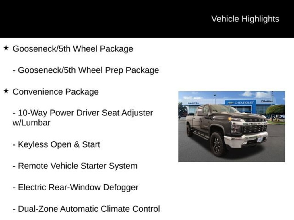 10-Way Power Driver Seat Adjuster w/Lumbar, 12-Volt Rear Auxiliary Power Outlet, 2nd Row Dual USB Charge-Only Ports, Convenience Package, Dual-Zone Automatic Climate Control, Electric Rear-Window Defogger, Electrical Lock Control Steering Column, Front LED Fog Lamps, Gooseneck/5th Wheel Package, Gooseneck/5th Wheel Prep Package, Heated Driver & Front Outboard Passenger Seats, Heated Steering Wheel, Keyless Open & Start, Leather-Wrapped Steering Wheel, LED Cargo Area Lighting, Manual Tilt/Telescoping Steering Column, Rear Wheelhouse Liners, Remote Vehicle Starter System, Unauthorized Entry Theft-Deterrent System. Odometer is 7908 miles below market average!We Buy cars- Fast, Fair and Easy This 2021 Black Chevrolet Silverado 3500HD LT 4WD is well equipped and includes these features and benefits: Convenience Package (10-Way Power Driver Seat Adjuster w/Lumbar, 12-Volt Rear Auxiliary Power Outlet, 2nd Row Dual USB Charge-Only Ports, Dual-Zone Automatic Climate Control, Electric Rear-Window Defogger, Electrical Lock Control Steering Column, Front LED Fog Lamps, Heated Driver & Front Outboard Passenger Seats, Heated Steering Wheel, Keyless Open & Start, Leather-Wrapped Steering Wheel, LED Cargo Area Lighting, Manual Tilt/Telescoping Steering Column, Rear Wheelhouse Liners, Remote Vehicle Starter System, and Unauthorized Entry Theft-Deterrent System), Gooseneck/5th Wheel Package, Gooseneck/5th Wheel Prep Package, Preferred Equipment Group 1LT (170 Amp Alternator, 2 USB Ports (First Row), 2-Speed Electronic Shift Transfer Case, 4.2 Diagonal Color Display Driver Info Center, 4G LTE Wi-Fi Hotspot Capable, Black Mirror Caps, Bluetooth® For Phone, Chevrolet Connected Access Capable, Chrome Front Grille Bar w/Molded Grille Inserts, Color-Keyed Carpeting Floor Covering, Compass Located In Instrument Cluster, Deep-Tinted Glass, EZ Lift Power Lock & Release Tailgate, Front Rubberized Vinyl Floor Mats, Halogen Reflector Headlamps, Integrated Trailer Brake Controller, Manual Tilt Wheel Steering Column, OnStar & Chevrolet Connected Services Capable, Outside Power-Adjustable Mirrors, Power Door Locks, Power Front Windows w/Driver Express Up/Down, Power Front Windows w/Passenger Express Down, Power Rear Windows w/Express Down, Rear 60/40 Folding Bench Seat (Folds Up), Rear Rubberized-Vinyl Floor Mats, Rear Vision Camera, Remote Keyless Entry, SiriusXM Radio, Steering Wheel Audio Controls, Steering Wheel Mounted Electronic Cruise Control, and Urethane Steering Wheel), Suspension Package, 220 Amp Alternator, 4-Way Manual Driver Seat Adjuster, 4-Way Manual Passenger Seat Adjuster, 4-Wheel Disc Brakes, 6 Speakers, 6-Speaker Audio System Feature, ABS brakes, Air Conditioning, Alloy wheels, AM/FM radio: SiriusXM, Apple CarPlay/Android Auto, Brake assist, Bumpers: chrome, Chevytec Spray-On Black Bedliner w/Chevrolet Logo, Cloth Seat Trim, Compass, Delay-off headlights, Driver door bin, Driver vanity mirror, Dual front impact airbags, Dual front side impact airbags, Durabed Pickup Bed, Electronic Stability Control, Engine Block Heater, Exhaust Brake, Front 40/20/40 Split-Bench Seat, Front 40/20/40 Split-Bench Seat w/Storage, Front anti-roll bar, Front Black Bowtie Emblem (LPO), Front Center Armrest w/Storage, Front License Plate Kit, Front reading lights, Front wheel independent suspension, Fully automatic headlights, Heated door mirrors, Heavy-Duty 80 Amp Battery, Illuminated entry, Low tire pressure warning, Occupant sensing airbag, Outside temperature display, Overhead airbag, Overhead console, Panic alarm, Passenger door bin, Passenger vanity mirror, Power door mirrors, Power steering, Power windows, Premium audio system: Chevrolet Infotainment 3, Radio: Chevrolet Infotainment 3 System, Rear reading lights, Rear step bumper, Remote keyless entry, Speed control, Split folding rear seat, Steering wheel mounted audio controls, Tachometer, Tilt steering wheel, Traction control, Trip computer, Turn signal indicator mirrors, Variably intermit