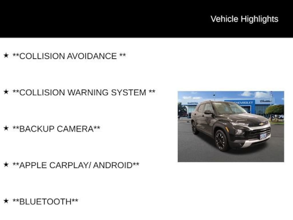 We Buy cars- Fast, Fair and Easy This 2023 Mosaic Black Metallic Chevrolet TrailBlazer LT AWD is well equipped and includes these features and benefits: Preferred Equipment Group 1LT, 2-Way Adjustable Front Head Restraints, 2-Way Power Driver Lumbar Seat Adjuster, 3.17 Axle Ratio, 4-Way Manual Front Passenger Seat Adjuster, 4-Wheel Disc Brakes, 6 Speakers, 6-Speaker Audio System Feature w/Amplifier, 7 Diagonal Color Touchscreen, 8-Way Power Driver Seat Adjuster, ABS brakes, Air Conditioning, Alloy wheels, AM/FM radio: SiriusXM, Auto High-beam Headlights, Brake assist, Bumpers: body-color, Cloth Seat Trim, Compass, Delay-off headlights, Driver door bin, Driver vanity mirror, Dual front impact airbags, Dual front side impact airbags, Electronic Stability Control, Emergency communication system: OnStar and Chevrolet connected services capable, Exterior Parking Camera Rear, Flat-Folding Front Passenger Seatback, Front anti-roll bar, Front Bucket Seats, Front Center Armrest, Front fog lights, Front License Plate Bracket, Front reading lights, Front wheel independent suspension, Fully automatic headlights, Heated door mirrors, Heated Driver & Front Passenger Seats, Heated front seats, Illuminated entry, Knee airbag, Low tire pressure warning, Not Equipped w/Driver & Fr Passenger Heated Seats, Occupant sensing airbag, Overhead airbag, Overhead console, Panic alarm, Passenger door bin, Passenger vanity mirror, Power door mirrors, Power driver seat, Power steering, Power windows, Radio data system, Radio: Chevrolet Infotainment 3 System, Rear side impact airbag, Rear window defroster, Rear window wiper, Remote keyless entry, Ride & Handling Suspension, Security system, SiriusXM Radio, Speed control, Split folding rear seat, Spoiler, Steering wheel mounted audio controls, Tachometer, Telescoping steering wheel, Tilt steering wheel, Traction control, Trip computer, Variably intermittent wipers, Wheels: 17 High Gloss Black Machined Aluminum, and Wireless Apple CarPlay/Android Auto.