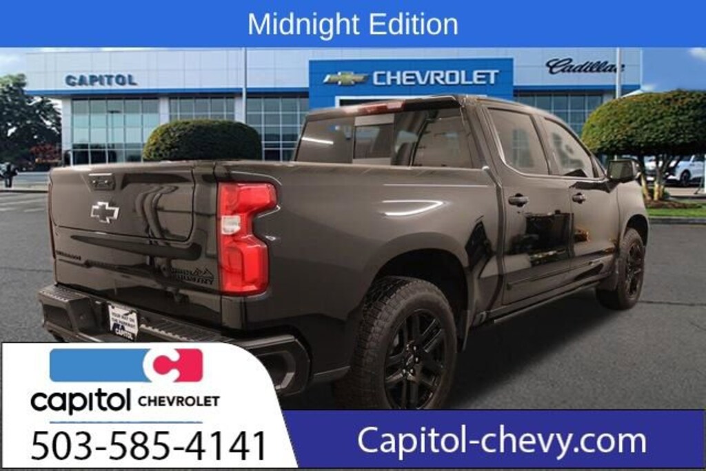 We Buy cars- Fast, Fair and Easy This 2025 Black Chevrolet Silverado 1500 High Country 4WD is well equipped and includes these features and benefits: Midnight Edition (Black Body Side Moldings, Black Door Handles, Black Dual Exhaust Tips, Black Grille, Black Mirror Caps, Black Power-Retractable Assist Steps, Dark Headlamp Bezel, Front Frame-Mounted Black Recovery Hooks, and Wheels: 20 x 9 High Gloss Black Painted Alum), Technology Package (15 Diagonal Multicolor Head-Up Display and Rear Camera Mirror), High Capacity Suspension Package, Preferred Equipment Group 3LZ (10-Way Power Driver Seat w/Lumbar, 10-Way Power Passenger Seat Adjuster w/Lumbar, 12.3 Multicolor Reconfigurable Digital Display, 120-Volt Bed Mounted Power Outlet, 120-Volt Interior Power Outlet, 2 USB Data Ports, 2nd Row Heated Outboard Seats, Adaptive Cruise Control, Auto-Dimming Inside Rear-View Mirror, Auto-Locking Rear Differential, Bed View Camera, Bluetooth® For Phone, Body-Color Painted Mirror Caps, Chevytec Spray-On Black Bedliner, Chrome Assist Steps, Chrome Recovery Hooks, Color-Keyed Carpeting Floor Covering, Deep-Tinted Glass, Driver Memory, Dual Exhaust w/Polished Outlets, Dual Rear USB Ports (Charge Only), Electric Rear-Window Defogger, Floor Mounted Center Console, Front Carpeted Floor Mats, Front LED Fog Lamps, Front Rain-Sensing Wipers, HD Surround Vision, Heated Driver & Front Outboard Passenger Seats, Heated Steering Wheel, Hitch Guidance w/Hitch View, In-Vehicle Trailering System App, Integrated Trailer Brake Controller, Keyless Open & Start, LED Cargo Area Lighting, OnStar Services Capable, Outside Heated Power-Adjustable Mirrors, Perimeter Lighting, Power Front Passenger Windows w/Express Up/Down, Power Front Windows w/Driver Express Up/Down, Power Rear Windows w/Express Down, Power Sliding Rear Window w/Rear Defogger, Power Tailgate, Power Tilt & Telescoping Steering Column, Rear Carpeted Floor Mats, Rear Cross Traffic Braking, Rear Pedestrian Alert, Rear Wheelhouse Liners, Remote Vehicle Starter System, Safety Alert Seat, SiriusXM w/360L Trial Subscription, Standard Tailgate, Steering Wheel Audio Controls, Teen Driver, Theft Deterrent System (Unauthorized Entry), Tire Pressure Monitoring System, Trailer Camera Provisions, Trailer Side Blind Zone Alert, Ultrasonic Front & Rear Park Assist, Universal Home Remote, Ventilated Driver & Front Passenger Seats, Wi-Fi Hot Spot Capable, and Wrapped Steering Wheel), Trailering Package (Hitch Guidance), Up-Level Rear Seat w/Storage Package, Z71 Off-Road Package (Heavy-Duty Air Filter, Hill Descent Control, and Off-Road Suspension), Power Sunroof, 170 Amp Alternator, 220 Amp Alternator, 3.23 Rear Axle Ratio, 4-Wheel Disc Brakes, 7 Speakers, ABS brakes, Air Conditioning, All-Weather Floor Liner (LPO) (AAK), Alloy wheels, AM/FM radio: SiriusXM with 360L, Apple CarPlay/Android Auto, Auto High-beam Headlights, Auto-dimming door mirrors, Auto-dimming Rear-View mirror, Automatic temperature control, Bodyside moldings, Brake assist, Bumpers: body-color, Compass, Delay-off headlights, Driver door bin, Driver vanity mirror, Dual front impact airbags, Dual front side impact airbags, Electronic Stability Control, Electronic Transmission Range Selector Shifter, Emergency communication system: OnStar, Engine Block Heater, Enhanced Automatic Emergency Braking, EZ Lift Power Lock & Release Tailgate, Following Distance Indicator, Forward Collision Alert, Front anti-roll bar, Front Black Bowtie Emblem (LPO), Front Bucket Seats, Front Center Armrest, Front dual zone A/C, Front fog lights,