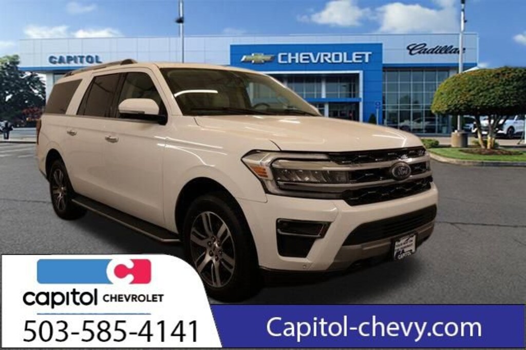 We Buy cars- Fast, Fair and Easy This 2022 Oxford White Ford Expedition Max Limited 4WD is well equipped and includes these features and benefits: Equipment Group 301A Mid Package, 12 Speakers, 2nd Row Power-Folding 40/20/40 Leather Bench Seat, 3.31 Axle Ratio, 3rd row seats: split-bench, 4-Wheel Disc Brakes, ABS brakes, Active Park Assist 2.0, Adjustable pedals, Air Conditioning, Alloy wheels, AM/FM radio: SiriusXM with 360L, Auto High-beam Headlights, Auto Start-Stop Removal, Auto-dimming door mirrors, Auto-dimming Rear-View mirror, Automatic temperature control, Brake assist, Bumpers: body-color, Compass, Delay-off headlights, Driver door bin, Driver vanity mirror, Dual front impact airbags, Dual front side impact airbags, Electronic Stability Control, Emergency communication system: SYNC 4 911 Assist, Exterior Parking Camera Rear, Four wheel independent suspension, Front anti-roll bar, Front Bucket Seats, Front Center Armrest, Front dual zone A/C, Front fog lights, Front License Plate Bracket, Front reading lights, Fully automatic headlights, Garage door transmitter, Hands-Free Foot-Activated Feature Removal, Heated & Ventilated Leather Front Captain's Chairs, Heated door mirrors, Heated front seats, Heated rear seats, Heated steering wheel, Illuminated entry, Leather steering wheel, Low tire pressure warning, Memory seat, Navigation system: Connected Navigation, Occupant sensing airbag, Outside temperature display, Overhead airbag, Overhead console, Panic alarm, Passenger door bin, Passenger vanity mirror, Pedal memory, Power door mirrors, Power driver seat, Power Liftgate, Power moonroof, Power passenger seat, Power steering, Power windows, Radio data system, Radio: B&O Sound System by Bang & Olufsen, Rain sensing wipers, Rear air conditioning, Rear anti-roll bar, Rear reading lights, Rear window defroster, Rear window wiper, Reclining 3rd row seat, Remote keyless entry, Security system, SiriusXM w/360L, Speed control, Speed-sensing steering, Speed-Sensitive Wipers, Split folding rear seat, Spoiler, Steering wheel memory, Steering wheel mounted audio controls, SYNC 4 w/Enhanced Voice Recognition, Tachometer, Telescoping steering wheel, Tilt steering wheel, Traction control, Trip computer, Turn signal indicator mirrors, Variably intermittent wipers, Ventilated front seats, Voltmeter, and Wheels: 20 Bright Machined Aluminum.