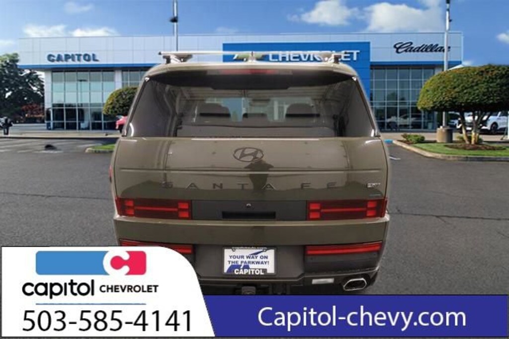 We Buy cars- Fast, Fair and Easy This 2025 Rockwood Green Hyundai Santa Fe XRT AWD is well equipped and includes these features and benefits: Option Group 01, 3rd row seats: bench, 4-Wheel Disc Brakes, 6 Speakers, ABS brakes, Air Conditioning, All Season Fitted Liners, Alloy wheels, AM/FM radio: SiriusXM, Apple CarPlay & Android Auto, Auto High-beam Headlights, Automatic temperature control, Brake assist, Bumpers: body-color, Cargo Cover, Cargo Net, Cargo Organizer, Cargo Tray, Delay-off headlights, Driver door bin, Driver vanity mirror, Dual front impact airbags, Dual front side impact airbags, Electronic Stability Control, Emergency communication system, Exterior Parking Camera Rear, First Aid Kit, Four wheel independent suspension, Front anti-roll bar, Front Bucket Seats, Front Center Armrest, Front dual zone A/C, Front reading lights, Fully automatic headlights, H-Tex Leatherette Seat Trim, Heated door mirrors, Heated Front Bucket Seats, Heated front seats, Illuminated entry, Knee airbag, Leather steering wheel, Low tire pressure warning, Navigation System, Occupant sensing airbag, Outside temperature display, Overhead airbag, Overhead console, Panic alarm, Passenger door bin, Passenger vanity mirror, Power door mirrors, Power driver seat, Power Liftgate, Power moonroof, Power steering, Power windows, Radio: AM/FM/HD Display Audio, Rear anti-roll bar, Rear seat center armrest, Rear side impact airbag, Rear window defroster, Rear window wiper, Remote keyless entry, Security system, Speed control, Speed-sensing steering, Split folding rear seat, Spoiler, Steering wheel mounted audio controls, Tachometer, Telescoping steering wheel, Tilt steering wheel, Traction control, Trip computer, Turn signal indicator mirrors, Variably intermittent wipers, Wheel Locks, and Wheels: 18 x 7.5J Dark Alloy.